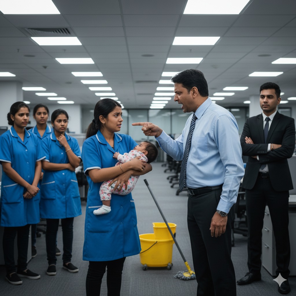 “Jyoti!” diye bağırdı. “Sen ne biçim bir çalışansın? Buraya bebek getirmeye nasıl cüret edersin? Bu yasa dışı! Şirketin yüz karasısın!”