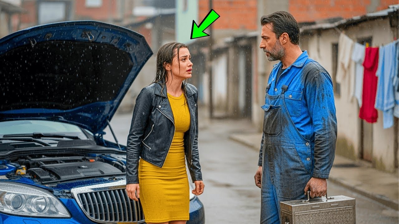 Entonces lo vio. Un hombre se acercaba bajo la lluvia con una caja de herramientas oxidada. Ropa sucia, pelo desordenado, pero un andar con dignidad que no se compra. Sus miradas se encontraron a través del vidrio empañado y a Nergis se le cortó la respiración. Apoyó las manos en el volante y, por primera vez en mucho tiempo, consideró abrir una rendija a la vulnerabilidad. Tal vez necesitaba ayuda. Tal vez necesitaba realidad.